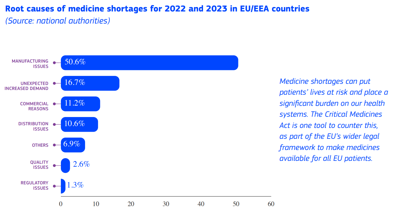 Európska komisia ešte v marci tohto roku predložila návrh nariadenia, ktoré má zlepšiť dostupnosť kritických liekov v EÚ – Critical Medicines Act. Cieľom návrhu je chrániť zdravie ľudí vďaka stimulovaniu diverzifikácie dodávateľského reťazca a podpore farmaceutickej výroby v EÚ. Akt má zároveň zlepšiť prístup k ďalším liekom spoločného záujmu, ktoré nemusia byť na niektorých trhoch dostupné. Táto iniciatíva zároveň prispieva k cieľu európskej zdravotnej únie, ktorým je zabezpečiť, aby mali pacienti v EÚ prístup k liekom, ktoré potrebujú, vtedy, keď ich potrebujú.
