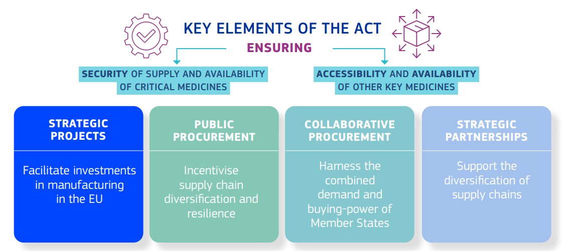 Akt uľahčí investície spoločnostiam, ktoré zvyšujú výrobu kritických liekov v EÚ, pričom bude stimulovať opatrenia, ktoré posilňujú odolnosť dodávateľských reťazcov. Zároveň ponúkne členským štátom možnosť spojiť sily, aby mohli zvýšiť svoju kúpnu silu.