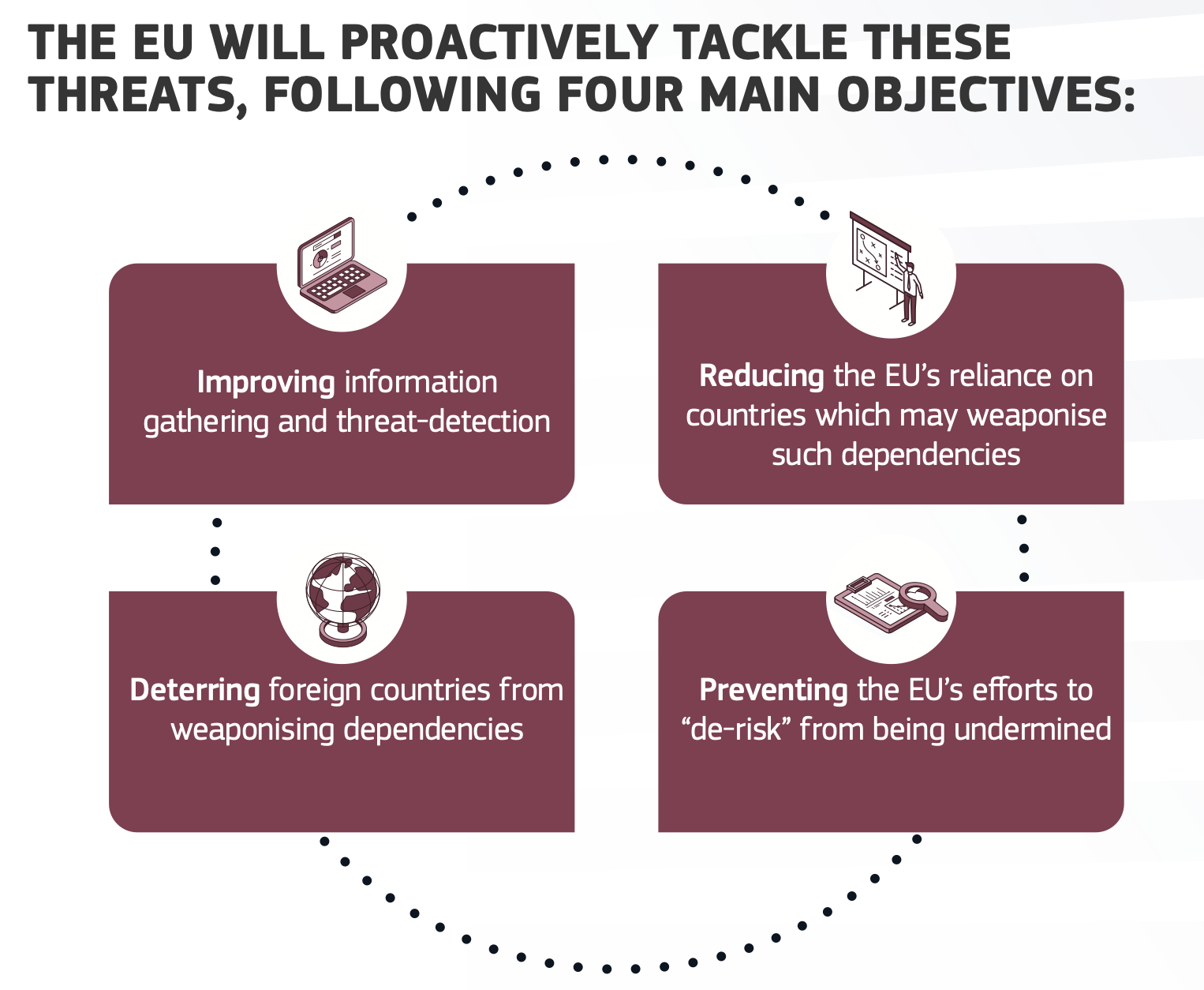 Európska komisia spolu s Vysokým predstaviteľom EÚ 3. decembra 2025 predstavila Spoločné oznámenie o posilnení ekonomickej bezpečnosti EÚ. Týmto reaguje na situáciu, keď sa obchodné a technologické závislosti môžu stať nástrojom nátlaku a keď sa riziká čoraz častejšie týkajú aj znalostí, údajov a kritických technológií. Cieľom je posilniť odolnosť Únie, pričom má zároveň zostať otvorená medzinárodnému obchodu a investíciám.