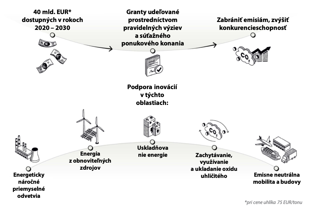 Inovačný fond bol spustený v roku 2020 a patrí medzi najväčšie svetové programy na podporu konkurencieschopnosti v sektore čistých technológií prostredníctvom rozširovania inovatívnych technológií s nulovými čistými emisiami. S odhadovaným rozpočtom 40 miliárd eur do roku 2030 sa fond zameriava na  prechod na klimaticky neutrálne hospodárstvo financovaním projektov v energeticky náročných odvetviach, obnoviteľných zdrojoch energie, skladovaní energie a vodíku, ako aj v oblasti zachytávania, využívania a skladovania uhlíka.