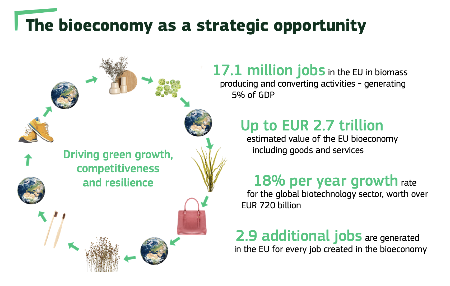 Biohospodárstvo už dnes významne prispieva k hospodárstvu EÚ – v roku 2023 dosiahlo hodnotu približne 2,7 bilióna EUR a zamestnávalo viac než 17 miliónov ľudí, čo predstavuje asi 8 % pracovných miest v EÚ. Stratégia má tento potenciál ďalej rozvíjať a premeniť ho na nové pracovné miesta, inovácie a riešenia šetrné k prírode.