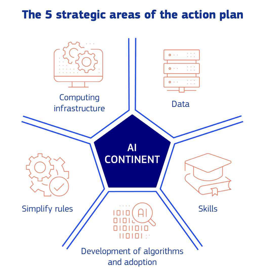 • Financovanie výskumu: cieľom je zdvojnásobiť ročné investície do AI v rámci Horizontu Európa na viac ako 3 miliardy EUR, vrátane dvojnásobného financovania pre AI vo vede.
