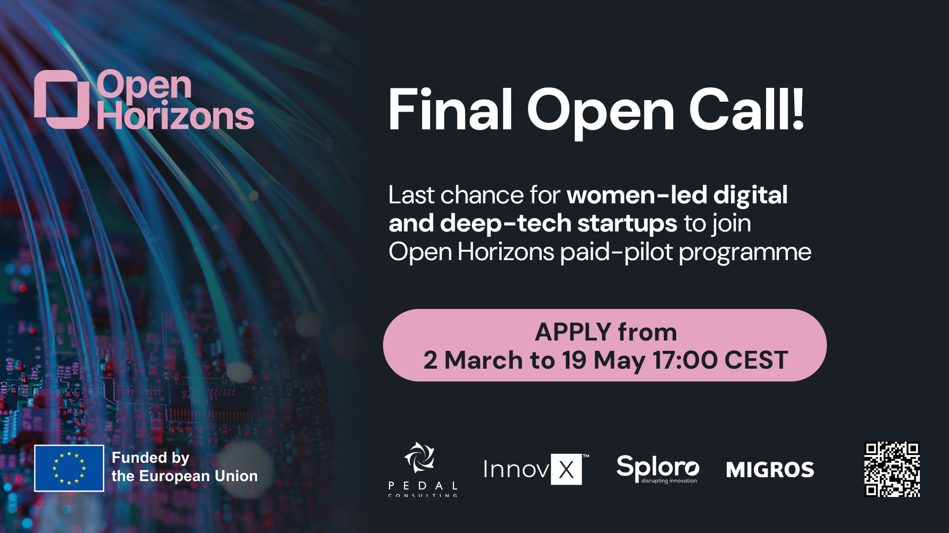 Projekt Open Horizons spúšťa svoju tretiu a zároveň poslednú výzvu v rámci programu Horizont Európa, ktorá je určená pre deep tech a digitálne startupy vedené ženami naprieč Európou. Vybraným startupom ponúka priamy prístup k pilotným projektom s nadnárodnými korporáciami, strategický mentoring a zvýšenie viditeľnosti pre investorov.