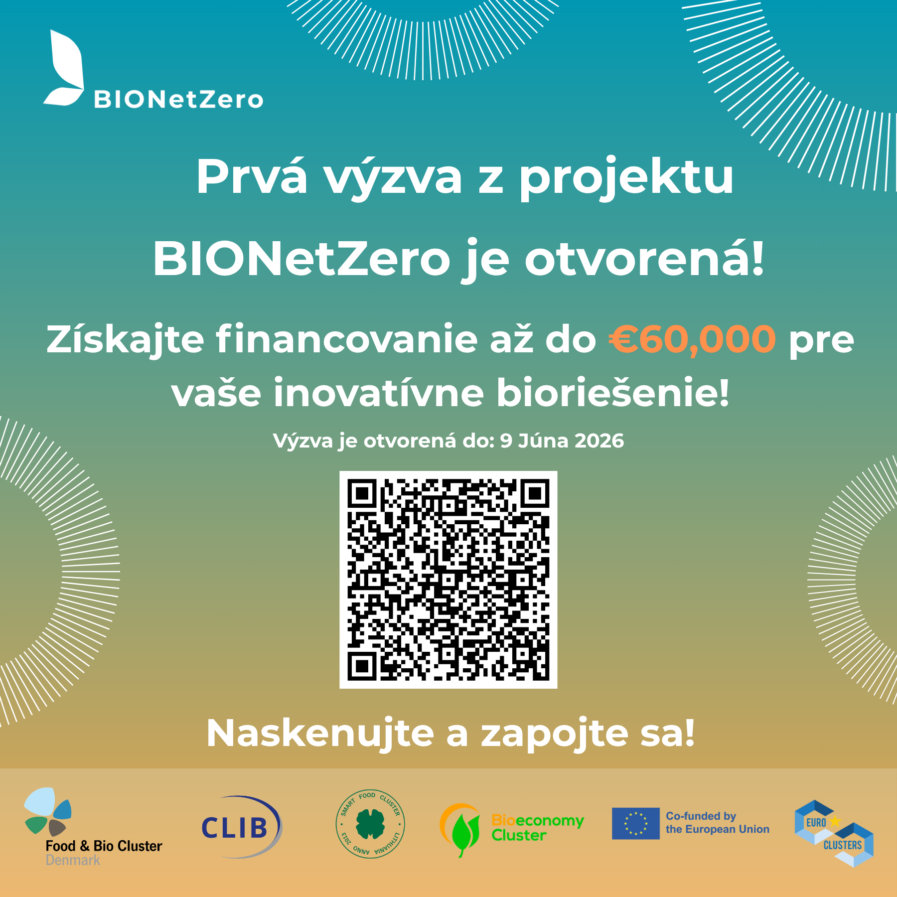 Dňa 9. apríla 2026 bola oficiálne otvorená prvá výzva projektu BIONetZero zameraného na podporu inovatívnych bioriešení. Výzva je určená pre malé a stredné podniky (MSP) a start-upy, ktoré chcú rozvíjať svoje riešenia v oblasti biohospodárstva, so zameraním na agropotravinársky sektor a energeticky náročné odvetvia.