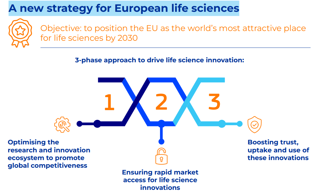 V tomto kontexte Európska komisia pripravila stratégiu EÚ pre vedy o živej prírode s názvom „Zvoľte si Európu pre vedy o živej prírode“, ktorej cieľom je do roku 2030 vytvoriť z EÚ najatraktívnejšie miesto pre vedy o živej prírode na svete. Nová stratégia je súčasťou kompasu konkurencieschopnosti Komisie a dopĺňa ďalšie iniciatívy, akými je stratégia EÚ pre startupy a scaleupy alebo plánovaný zákon o biotechnológiách, ktorý by mal byť predložený najneskôr v roku 2026.