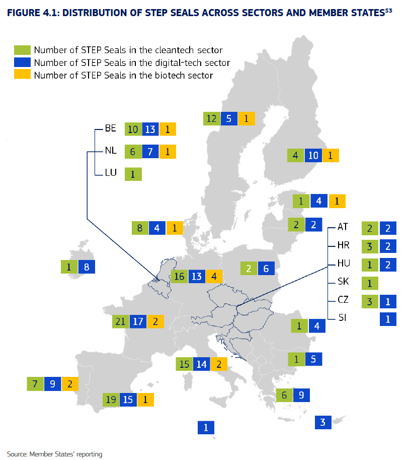 Slovenské projekty doposiaľ získali len jednu pečať STEP,a to v rámci Inovačného fondu. STEP bude pokračovať do konca aktuálneho Viacročného finančného rámca (VFF), čiže do roku 2027. V tomto období sa rozšíri aj o projekty zamerané na obranu a Komisia takisto plánuje ponúknuť členským štátom viac stimulov (napr. vyššia miera predfinancovania), aby využívali nástroje kohéznej politiky na priority a projekty STEP. Komisia už teraz umožňuje podporiť projekty s pečaťou STEP preplatením až 100% oprávnených výdavkov, vyššej miery predfinancovania (30% + nových 10%) a podporiť aj veľké podniky.