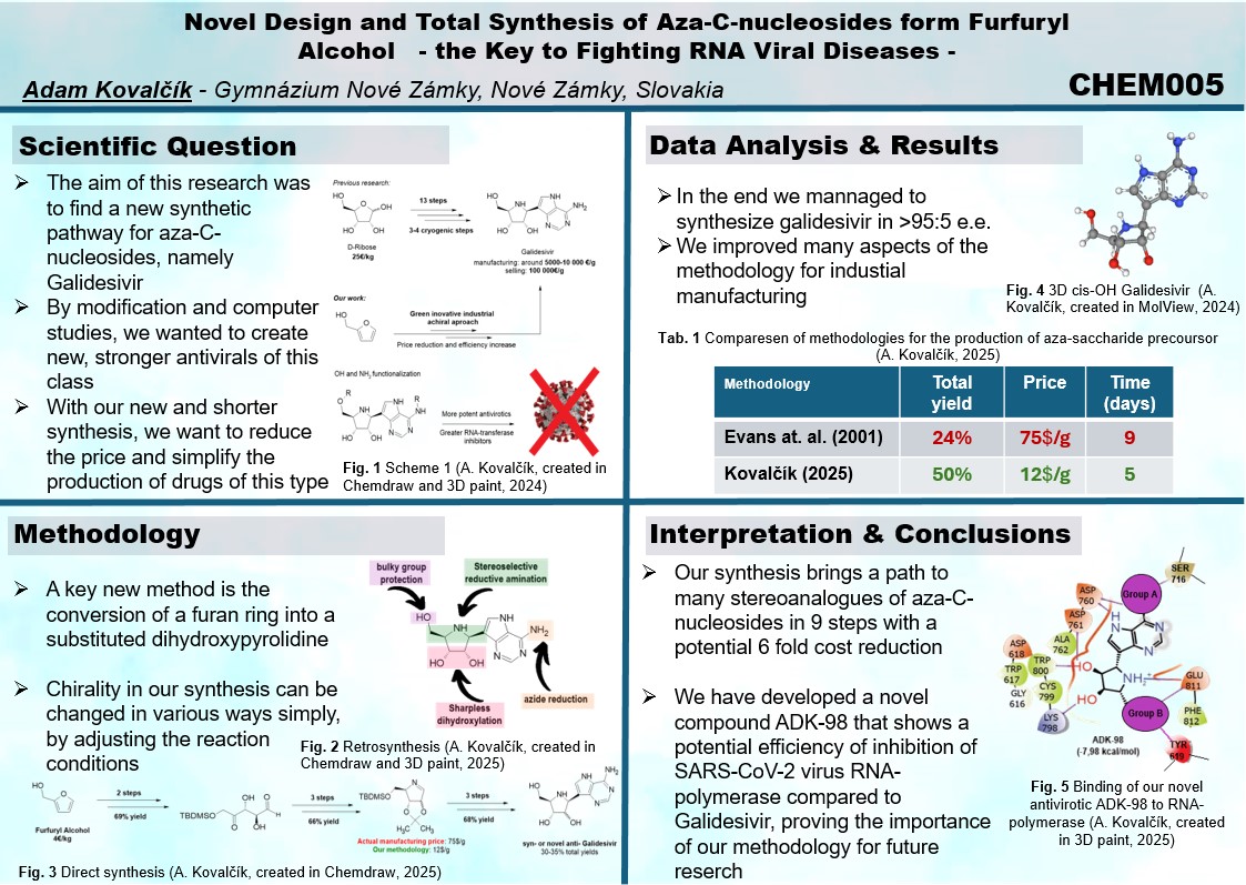 ISEF: Projekt „Antivirotiká z kukurice – Nová sereoselektná syntéza Galidesiviru z furfuryl alkoholu“ nájdete tu.