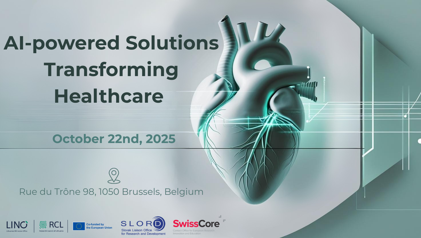 Slovak Liaison Office for Research and Development in Brussels together with Lithuanian RDI Liaison Office (LINO) and Swiss Contact Office for Research and Higher Education (Swisscore) are pleased to invite you to the event AI-Powered Solutions Transforming Healthcare.