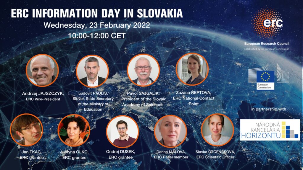 23.2. 2022,10:00-12:00 – informačný deň ku grantom ERC za účasti zahraničných spíkrov – Národná kancelária Horizontu – online