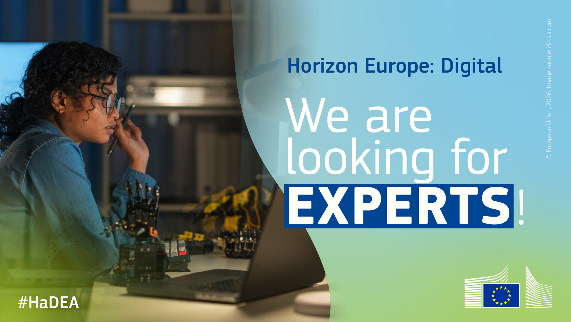 Európska výkonná agentúra pre zdravie a digitalizáciu (HaDEA) hľadá v rámci digitálnej oblasti klastra 4 programu Horizont Európa 2021 – 2027 odborných hodnotiteľov v oblasti umelej inteligencie, robotiky a senzorických technológií. Výzva je určená  odborníkom z akademickej obce, výskumných organizácií, priemyslu, malých a stredných podnikov a verejných orgánov vrátane tých s interdisciplinárnymi a medzisektorovými skúsenosťami.
