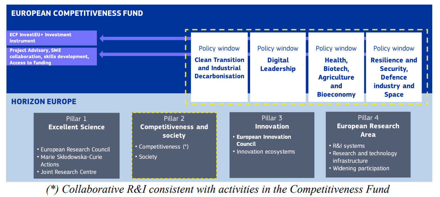 V stredu 16. júla 2025 Európska komisia predstavila svoj návrh budúceho rozpočtu EÚ, tzv. viacročného finančného rámca (VRF) na roky 2028 – 2034. Okrem jeho celkového objemu, ktorý dosahuje 2 bilióny EUR, bola predstavená aj nová štruktúra jeho jednotlivých častí a programov. Predstavený tak bol aj návrh nového rámcového programu pre výskum a inovácie, ktorý bude pokračovať pod názvom Horizont Európa, ako aj návrh na nový Európsky fond pre konkurencieschopnosť (ECF), ktorý pod sebou združí 11 aktuálnych programov EÚ. Tieto dva programy budú navzájom veľmi úzko prepojené tak, aby dokázali poskytnúť plynulú podporu počas celej investičnej cesty – od aplikovaného výskumu po inovácie a výrobu.