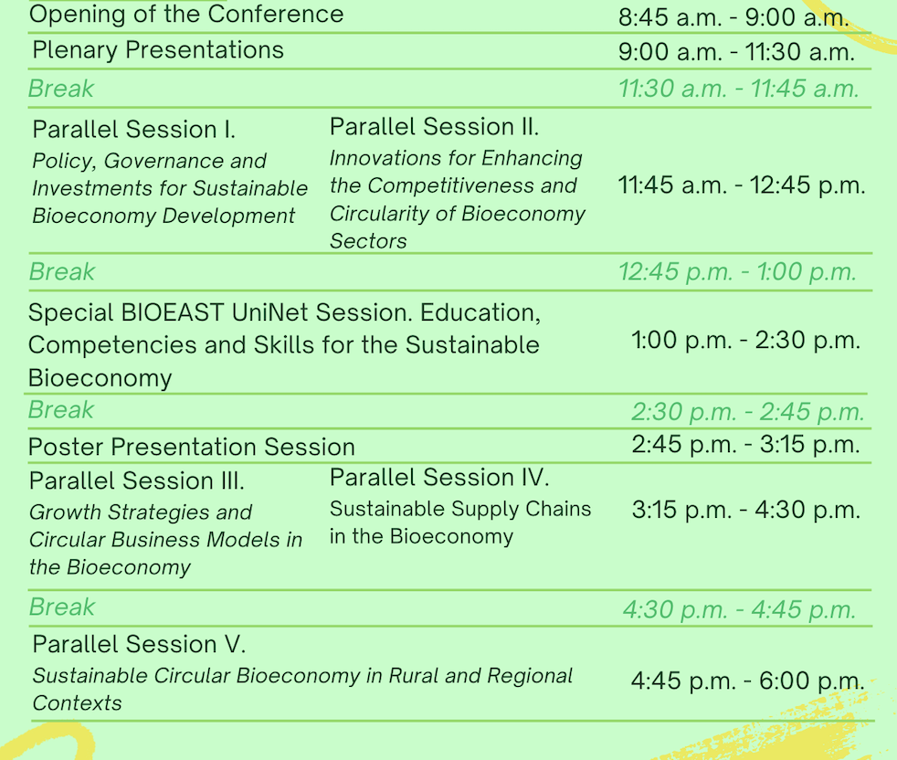 Konferencia, ktorá sa uskutoční online, je zameraná na spoločenské vedy v oblasti biohospodárstva a spojí výskumníkov, odborníkov z praxe a tvorcov politík s cieľom podporiť interdisciplinárny dialóg a výmenu poznatkov. Podujatie vytvára priestor na odbornú diskusiu o aktuálnych trendoch, výzvach a príležitostiach v oblasti udržateľného a obehového biohospodárstva.