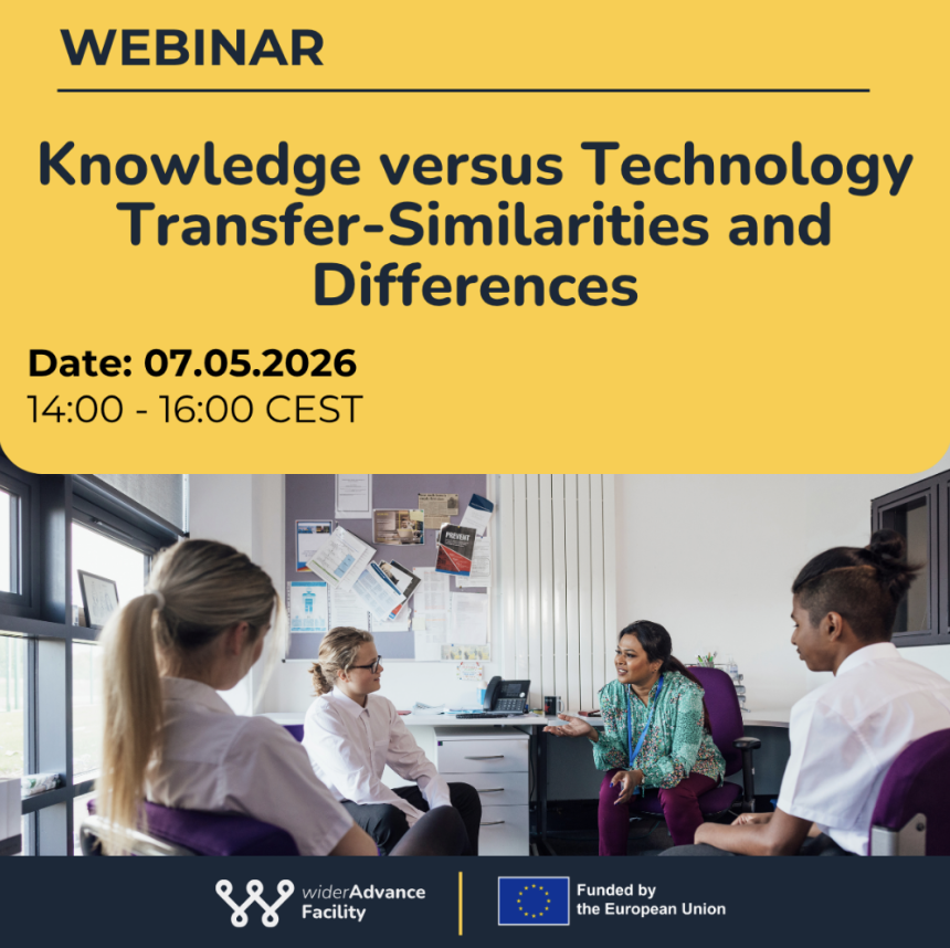 Iniciatíva widerAdvance Facility organizuje dňa 7. mája 2026 webinár zameraný na vysvetlenie pojmov transfer znalostí a transfer technológií a na identifikovanie podobností a rozdielov medzi nimi. Prezentácie rečníkov a následná diskusia zároveň poskytnú praktické príklady z viacerých vedeckých oblastí (AI, medicína, energetika atď.) a ilustrujú, ako sa transfer znalostí a transfer technológií prelínajú v reálnom vývoji.
