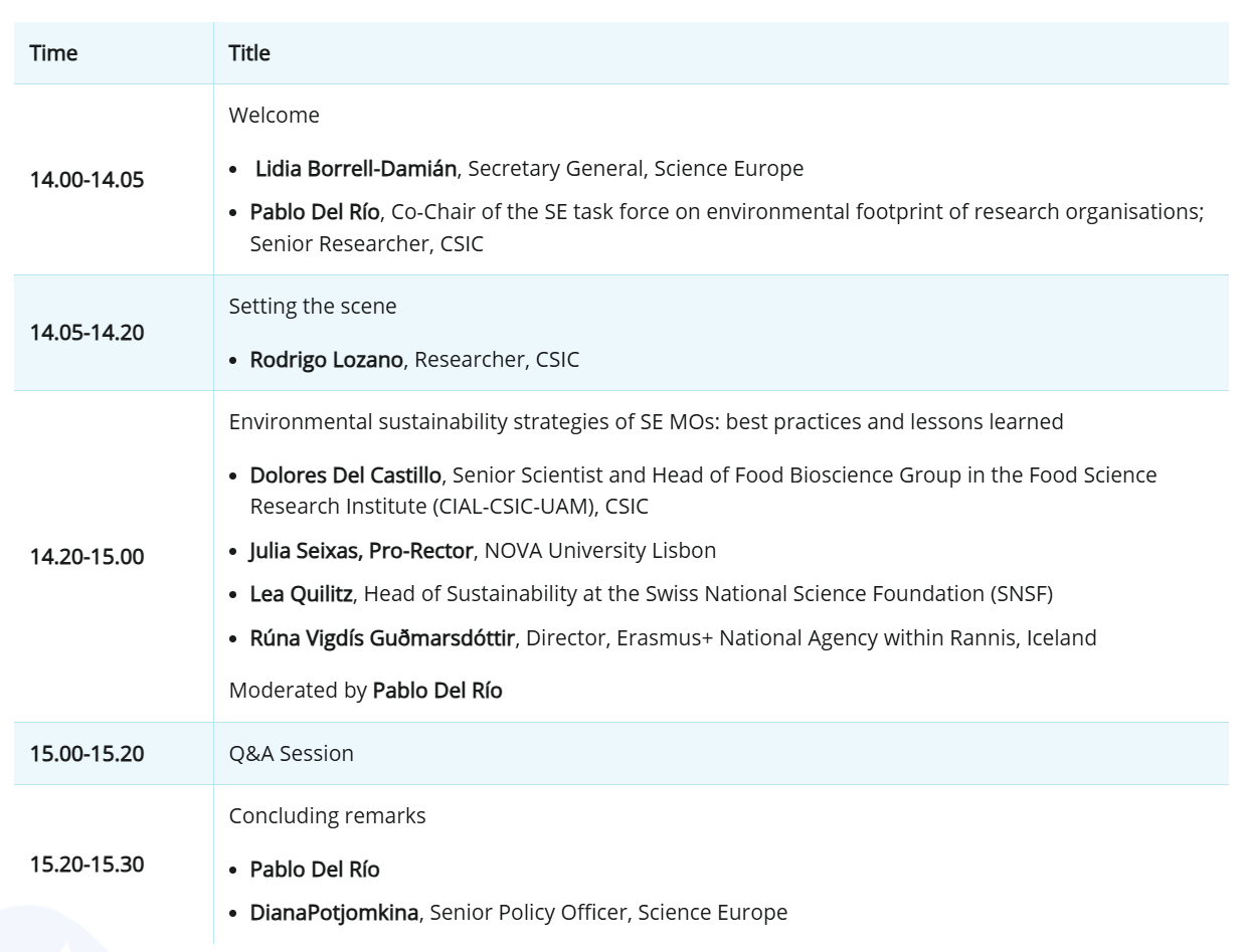 Webinár sa zameria na environmentálnu udržateľnosť vo vnútorných činnostiach výskumných organizácií, najmä na vykonávanie výskumu a správu. Cieľom webináru je zdieľať osvedčené postupy a praktické poznatky, ktoré pomôžu výskumným organizáciám, ktoré vyvíjajú stratégie environmentálnej udržateľnosti.